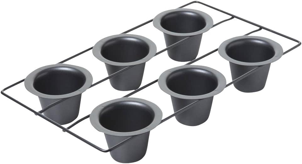 You can get popover trays online, or you can use a muffin tin or ceramic ramekins. Ideally, the popover tray is deeper and more spread out, so you will get bigger sized popovers using the real deal, but don’t fret if you have muffin tins or ramekins. They will ALL still taste delish! I bought 2 different tray sizes on Amazon and have yet to use the smaller one. I need to try that one – it should make cute little popovers!